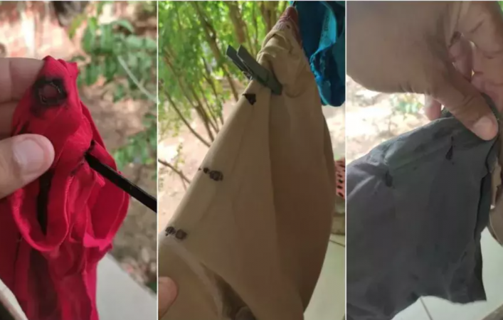 No primeiro momento, o mototaxista viu o fio velho caído no chão, mas não percebeu que as cuecas estavam queimadas. Minutos depois, ao ir pegar uma cueca para se arrumar para a academia, Jackson viu que todas estavam queimadas.