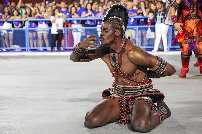 A Grande Rio também conseguiu traduzir na avenida todo o dinamismo de Exú, entidade que representa a mudança, a comunicação e o movimento. Exú, portanto, tem muitas faces. Foi pensando nisso que os carnavalescos Leonardo Bora e Gabriel Haddad decidiram colocar na avenida o orixá com múltiplas representações.