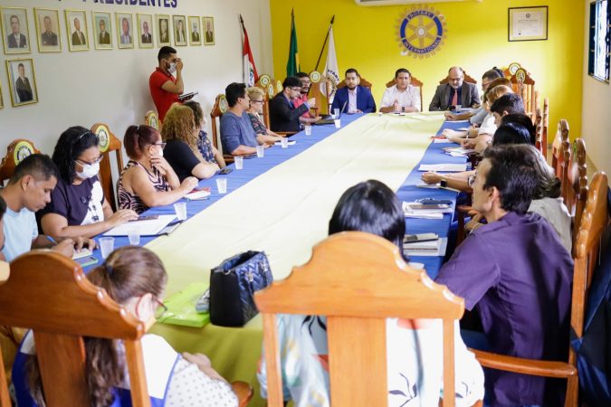 A reunião aconteceu na sede do Rotary Club e contou com a presença do procurador municipal Klenaldo Oliveira, do controlador municipal Marcondes Oliveira, da secretária municipal de Gestão Cinara Barbosa, do secretário municipal de Saúde Jânio Barbosa e técnicos da SMS.