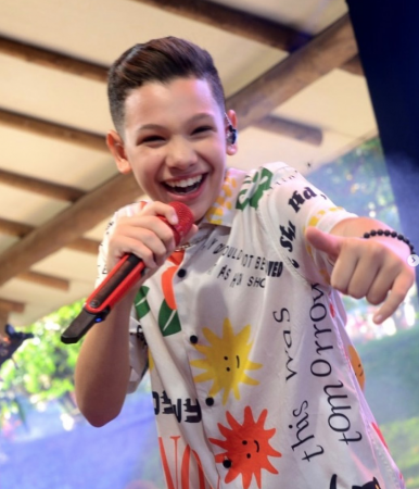 Natural de Alagoas, o cantor mirim fez seu primeiro show aos 8 anos. “Foi num shopping, no Dia das Crianças”, lembra ele. “Já faço shows em Maceió, em aniversários, casamentos, formaturas”.