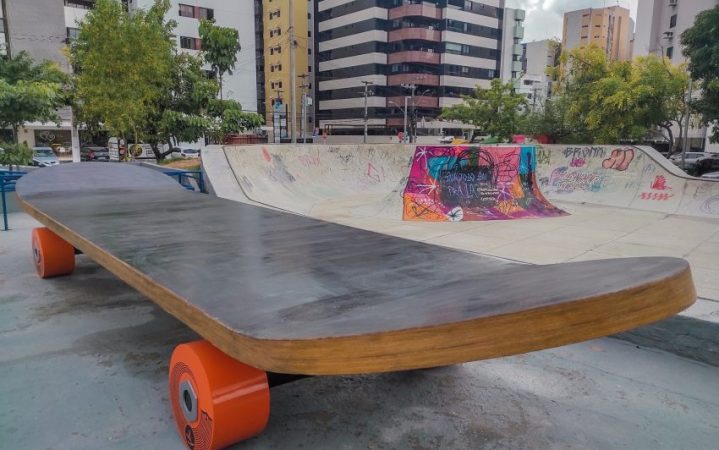 Skate gigante de 8 metros é instalado em praça de Maceió
