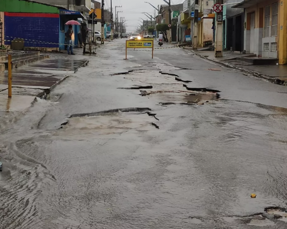 Um temporal atingiu a cidade de São Sebastião, no Agreste de Alagoas, nesta sexta-feira (3), e provocou uma enxurrada que arrancou o asfalto, abriu buracos em ruas e fez cacimbas afundarem, provocando rachaduras nas casas. Ninguém ficou ferido.