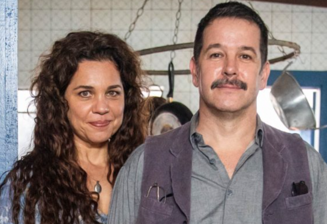 Ele contou que Isabel Teixeira (Maria Bruaca) já precisou gravar de costas para o marido na novela, Murilo Benício (Tenório), por um motivo inusitado.