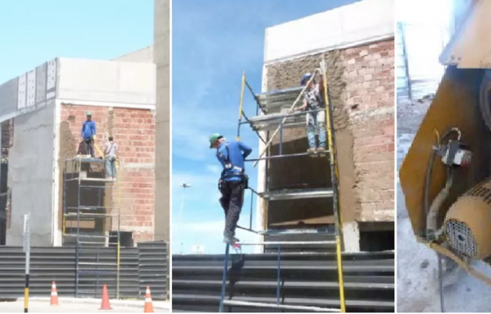 Em uma delas, os peritos verificaram que os trabalhadores estavam sem equipamentos de proteção individual (EPIs) adequados e realizavam atividades sobre um andaime com ausência de guarda corpo, sem telas de proteção contra quedas e com ancoragem insuficiente, o que gera riscos de tombamento da estrutura e acidentes por queda com os trabalhadores.