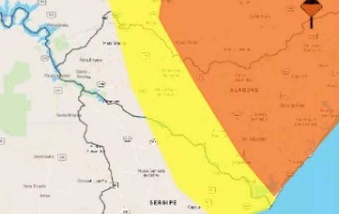 O aviso laranja é para cidades do Sertão, Agreste e Leste alagoanos e é válido até as 11h de domingo, com possibilidade de chuva entre 30 a 60 mm/h ou 50 a 100 mm/dia. Há risco de alagamentos, deslizamentos de encostas e transbordamentos de rios.