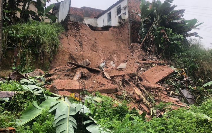 CHUVAS: Parte de muro de residência desaba na Grota do Rui Palmeira, na Serraria