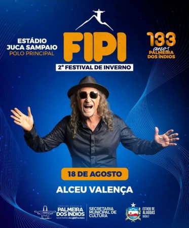 A segunda edição do Festival de Inverno de Palmeira dos Índios (FIPI), que acontecerá de 13 a 20 de agosto, dentro da programação comemorativa dos 133 anos de Emancipação Política da cidade, contará com grandes atrações da Música Popular Brasileira (MPB) e, entre elas, está o cantor e compositor pernambucano Alceu Valença. Nesta terça-feira (9), Alceu publicou em redes sociais oficiais a data do show, que será realizado no dia 18, no Polo Principal do FIPI, no Estádio Municipal Juca Sampaio.