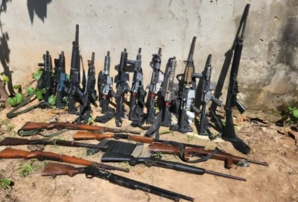 Ao todo foram encontradas 19 armas, sendo 16 fuzis e três espingardas, além de carregadores, munição e um radiotransmissor. Ninguém foi preso.