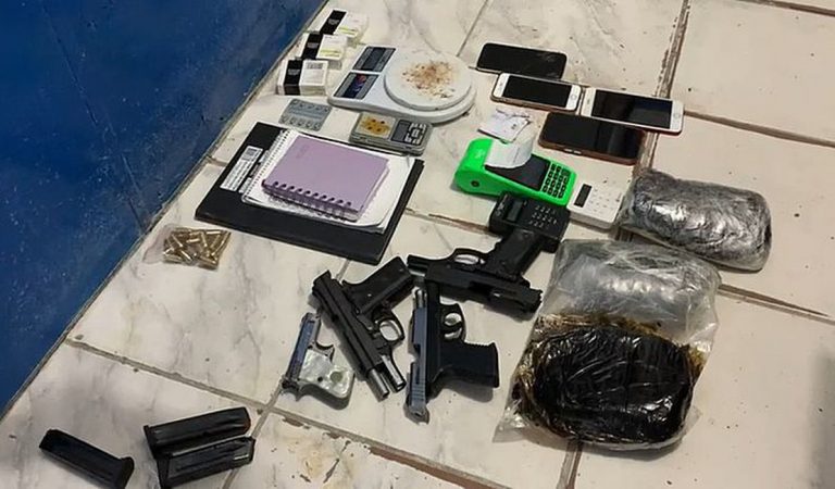 Uma influenciadora alagoana foi presa com armas de fogo e uma grande quantidade de drogas no bairro Guaxuma, em Maceió, nesta sexta-feira (26).