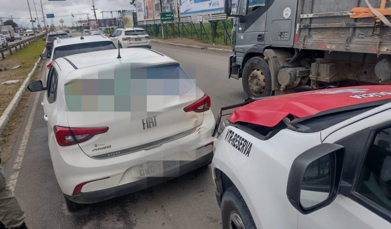 Com isso, o veículo acabou atingindo a traseira de um Fiat Argo, que por sua vez bateu no carro que estava na frente. Uma guarnição do Batalhão de Polícia Rodoviária (BPRv) foi acionada.