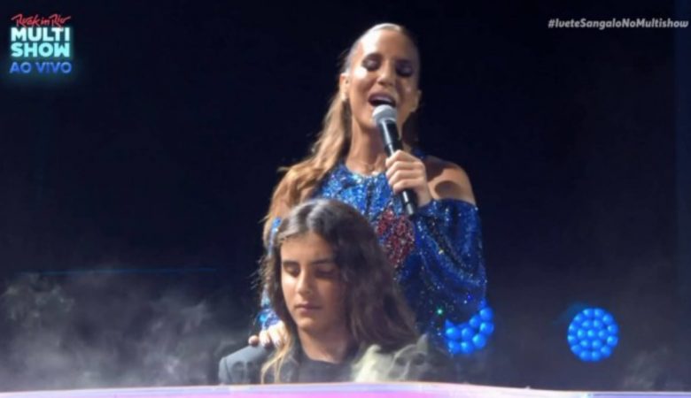 Marcelo, filho de Ivete Sangalo, toca piano ao lado da mãe no Rock in Rio