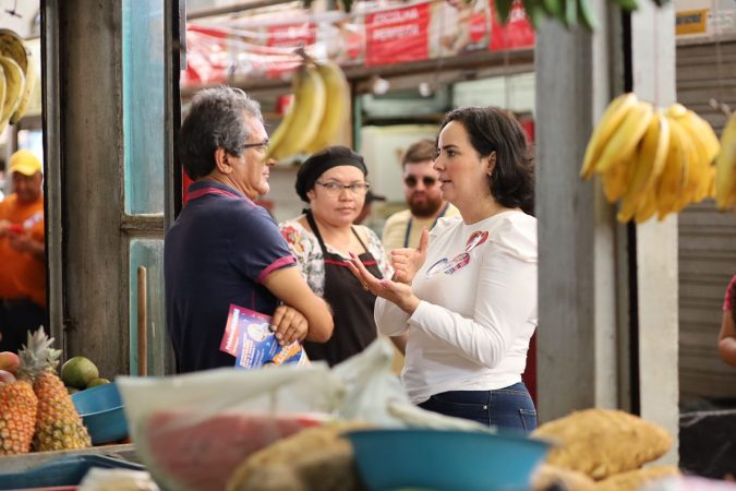 A ex-prefeita de Arapiraca, Fabiana Pessoa, fez questão de conversar com todos os comerciantes, abraçar e cumprimentar os consumidores e ainda ouviu as queixas e sugestões para melhorar a estrutura daquele espaço público que é bem frequentado por feirantes e populares.