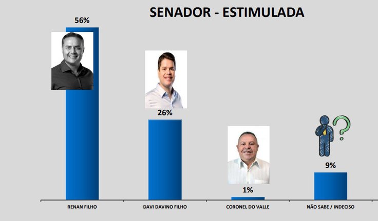 Senado: Renan Filho continua na liderança com 56% das intenções de voto