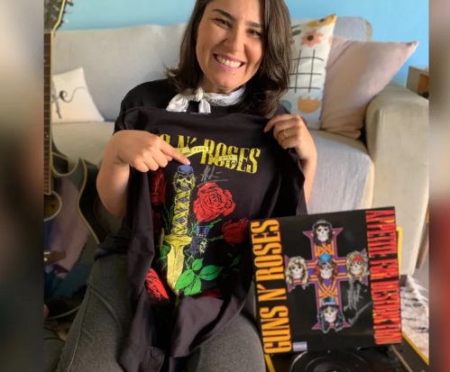 Um contato no hotel onde a banda estava hospedada permitiu que ela conseguisse conversar com um dos produtores do Guns N’ Roses. “Eu contei a minha história, o quanto sou fã, e deixei com ele uma sacola com um vinil e uma camiseta. Foi uma tentativa, não sabia se ia conseguir”, conta.