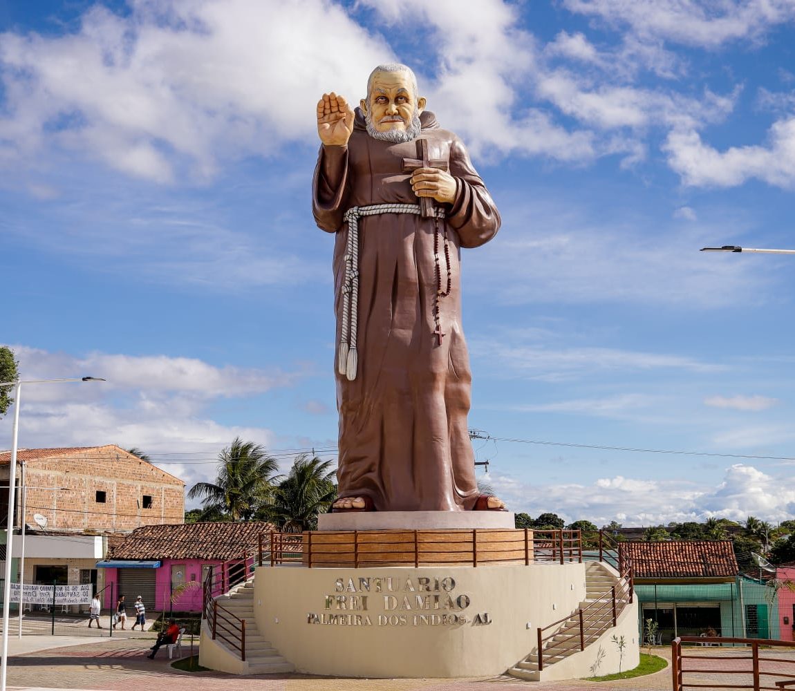 Mais de 20 mil pessoas se emocionaram nesta segunda-feira (14), no Distrito de Canafístula, durante a solenidade festiva de inauguração do Santuário Frei Damião, o primeiro de Alagoas. A fé pelo Santo do Nordeste tomou conta da Praça dos Romeiros e muita gente chorou quando a imagem do Frei capuchinho foi oficialmente inaugurada. Uma missa e um show do padre Antônio Maria também fizeram parte da programação religiosa. A estátua mede mais de 20 metros e foi confeccionada pelo escultor pernambucano Ranilson Viana.