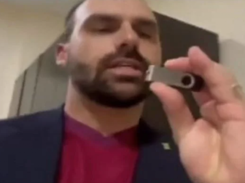 O deputado federal reeleito Eduardo Bolsonaro (PL-SP) afirma, em vídeo que começou a circular nesta terça (29/11) em grupos bolsonaristas nas redes sociais, que foi ao Catar levar pen-drives com “vídeos em inglês explicando a situação no Brasil”. Alvo de críticas até de aliados desde que sua presença no país que realiza a Copa do Mundo foi revelada pela transmissão oficial da Fifa, o filho do presidente Jair Bolsonaro (PL) argumenta, no arquivo que não divulgou em seus canais oficiais, que está fazendo “comunicação internacional”.