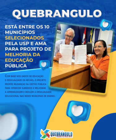 Quebrangulo está entre os 10 municípios selecionados pela USP e AMA para projeto de melhoria da educação pública.