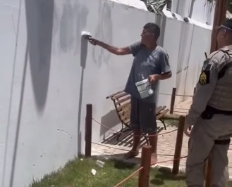Pichação é considerada crime ambiental. E um caso que ocorreu em Alagoas, nesse final de semana, viralizou nas redes sociais. Isto porque um homem, que praticou esse ato no muro de uma praça em Japaratinga, cidade localizada no Litoral Norte do estado, foi obrigado a pintar o local por policiais militares.