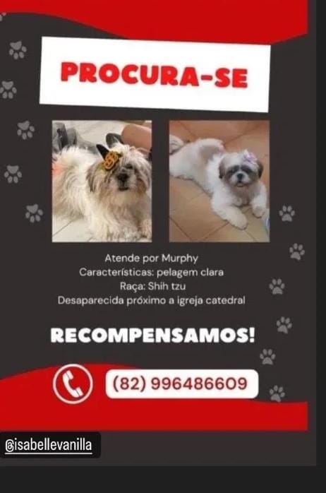 Família oferece recompensa para quem encontrar cadela da raça shih-tzu furtada em Palmeira dos Índios