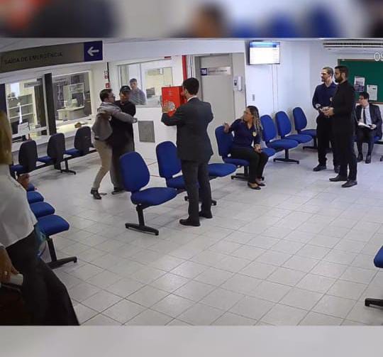 Nas redes sociais, o advogado Geraldo Carvalho denunciou a ameaça e agressão provocada por um homem com quem participaria de uma audiência. O caso aconteceu no prédio da Justiça do Trabalho, em Maceió, na quinta-feira (9). Um vídeo mostra o momento em que o suspeito se aproxima, agarra a vítima e chega a chutar. Servidores do judiciário começam a pedir ajuda até que um segurança aparece.