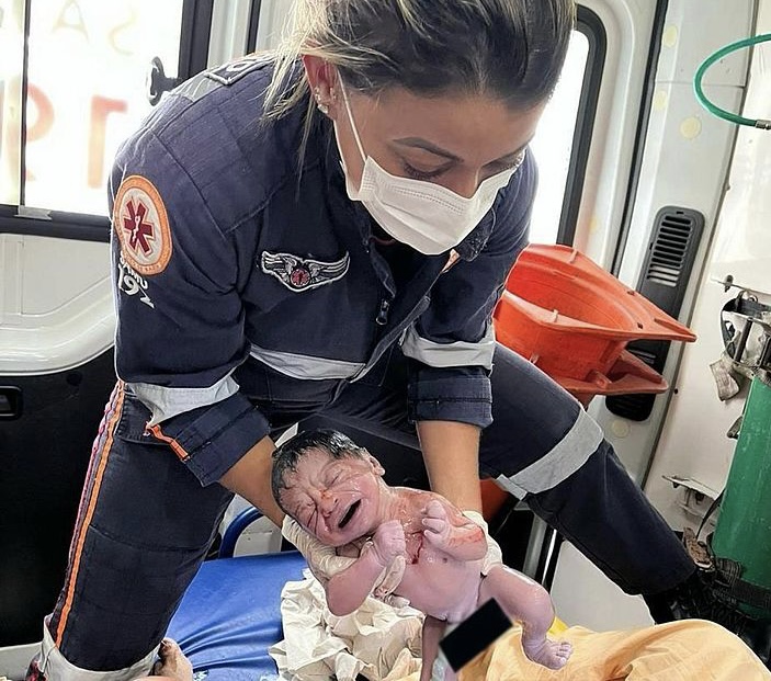 A enfermeira Bruna Costa ressaltou a emoção de ter sido a primeira a segurar o bebê, durante o parto. “Fiquei muito emocionada e tranquila, nós que trabalhamos no Samu estamos preparados para qualquer situação ou chamado, e, por já ter trabalhado em centro cirúrgico, sinto que isto facilitou bastante para mim. Estávamos diante de um parto de risco. A mãe não sabia sexo, tempo de gestação, não tinha feito pré-natal, nem ultrassom. Essa ocorrência foi a mais linda e abençoada que já vivi. Ainda me encontro em êxtase. Sou muito grata a Deus por ter participado”, falou a enfermeira emocionada.