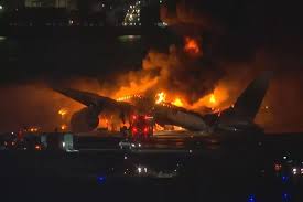 Um avião da Japan Airlines com 367 passageiros pegou fogo ao colidir com uma aeronave da Guarda Costeira do Japão durante o pouso no aeroporto de Haneda, em Tóquio, nesta terça-feira (2). A empresa aérea assegura que todos os ocupantes foram evacuados a tempo. O incidente envolveu também a aeronave da Guarda Costeira, que tinha 6 pessoas a bordo e estava a caminho de fornecer ajuda a áreas afetadas pelo terremoto da segunda-feira (1) que causou 48 mortes na costa oeste do país.