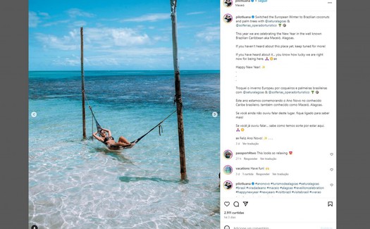 O Governo de Alagoas realizou na última semana de 2023 uma ação de marketing com um casal de influenciadores portugueses, Luana e Fred, buscando promover o Destino Alagoas no mercado internacional. Com cerca de 350 mil seguidores no Instagram, o casal de pilotos de helicópteros passou a curtir os destinos como passageiros e divulgou suas viagens nas redes sociais.