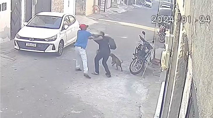 Dois homens brigaram e se mataram usando a mesma arma de fogo na manhã desta quarta-feira (24) em Fortaleza. O crime foi registrado por câmeras de segurança de uma residência. (Veja acima)