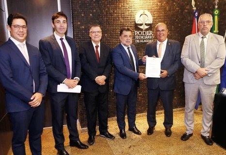 Participaram da entrega do documento o desembargador Ivan Brito; Maurício Pitta, corregedor-geral do MP/AL; Carlos Cabral, diretor-geral do MP/AL; e Humberto Bulhões, chefe de gabinete.