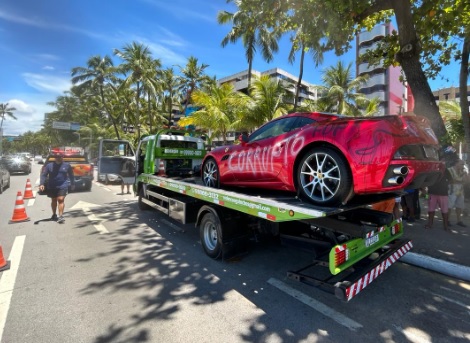 Irregular e com pichações, Ferrari ‘esquecida’ na orla é guinchada