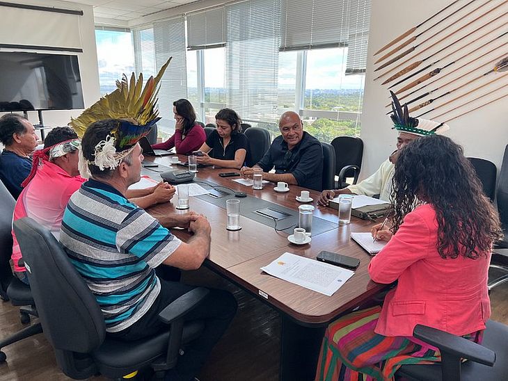 A Fundação Nacional dos Povos Indígenas (Funai) recebeu, na tarde desta quinta-feira (7), em Brasília, lideranças indígenas de povos de territórios localizados no estado de Alagoas. A comitiva foi recepcionada pela presidenta-substituta, Lucia Alberta; a diretora de Proteção Territorial, Janete Carvalho; e pela coordenadora-geral de Licenciamento Ambiental, Júlia Paiva.