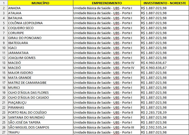 O anúncio dos resultados das novas modalidades do Novo Programa de Aceleração do Crescimento (Novo PAC Saúde) foi feito no início de março, revelando um investimento significativo na saúde pública. Um total de 1,8 mil Unidades Básicas de Saúde (UBS) será construído em todo o Brasil, sendo que em Alagoas, 25 municípios serão beneficiados. Com um investimento total de R$ 56,3 milhões, está prevista a construção de 26 novas UBS no estado.