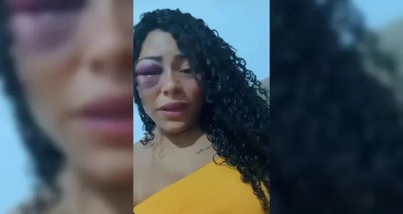 Ela gravou uma sequência de vídeos no Instagram relatando violência sofrida. Nas imagens, é possível ver que o olho dela estava bastante machucado, inchado e de coloração roxa.