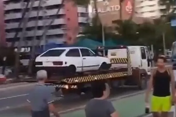 O veículo estava estacionado em frente a uma edificação não habitada e apresentava características de abandono, com o para-brisa trincado e sem a placa de identificação traseira, motivo pelo qual o veículo foi removido ao depósito do órgão. O carro possui débito de licenciamento no valor de R$ 1.280,04.