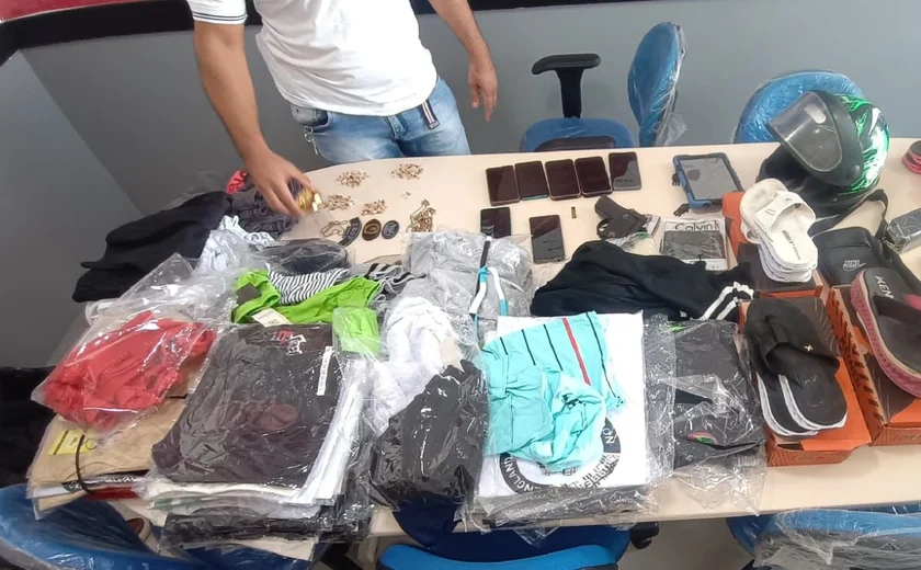 O menor foi localizado e com ele foram encontrados uma arma de fogo, 204 pedras de crack, R$ 127,00 em espécie, um tablet, sete celulares, treze pares de sandália, doze bermudas, seis correntes de prata, 69 camisas, um relógio, dois óculos, três cuecas e um canivete. Parte do material foi reconhecido como produtos furtados de uma loja do Centro de Delmiro Gouveia.
