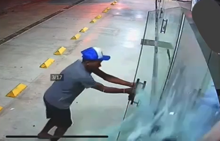 A invasão foi registrada por uma câmera de segurança instalada na frente da galeria, o que não intimidou o homem. As imagens mostram ele chegando na porta da loja, olhando rapidamente pelo vidro e forçando os puxadores até quebrar.