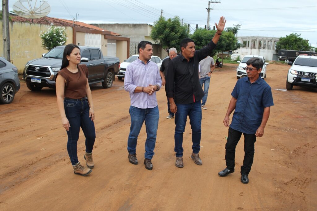 Acompanhado da equipe técnica da Secretaria Municipal de Infraestrutura e de representantes da empresa responsável pela execução dos serviços que serão realizados nas comunidades Recanto do Sabiá, Vegas I e II e Bela Vista, o prefeito Júlio Cezar voltou nesta quinta-feira (23) ao Sabiá. Juntos, eles definiram detalhes do cronograma da primeira etapa da drenagem e pavimentação de ruas das quatro comunidades.