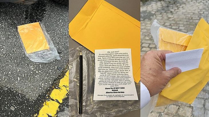 Dentro do envelope, ele deixa uma carta e um lápis com a mensagem com pedido de ajuda. Ele afirmou ainda que o lápis é um gesto simbólico e que a doação fica por decisão de quem abrir o envelope, que também contém a chave Pix dele.
