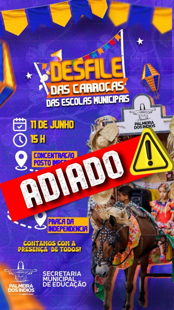 Nesta sexta-feira (14), as principais ruas de Palmeira dos Índios serão tomadas por um colorido desfile matuto, repleto de chita, palha e muita criatividade. 35 escolas da rede municipal entrarão na avenida com suas carroças devoradas e desfilarão pelas vias da cidade, resgatando a tradição dos festejos juninos.