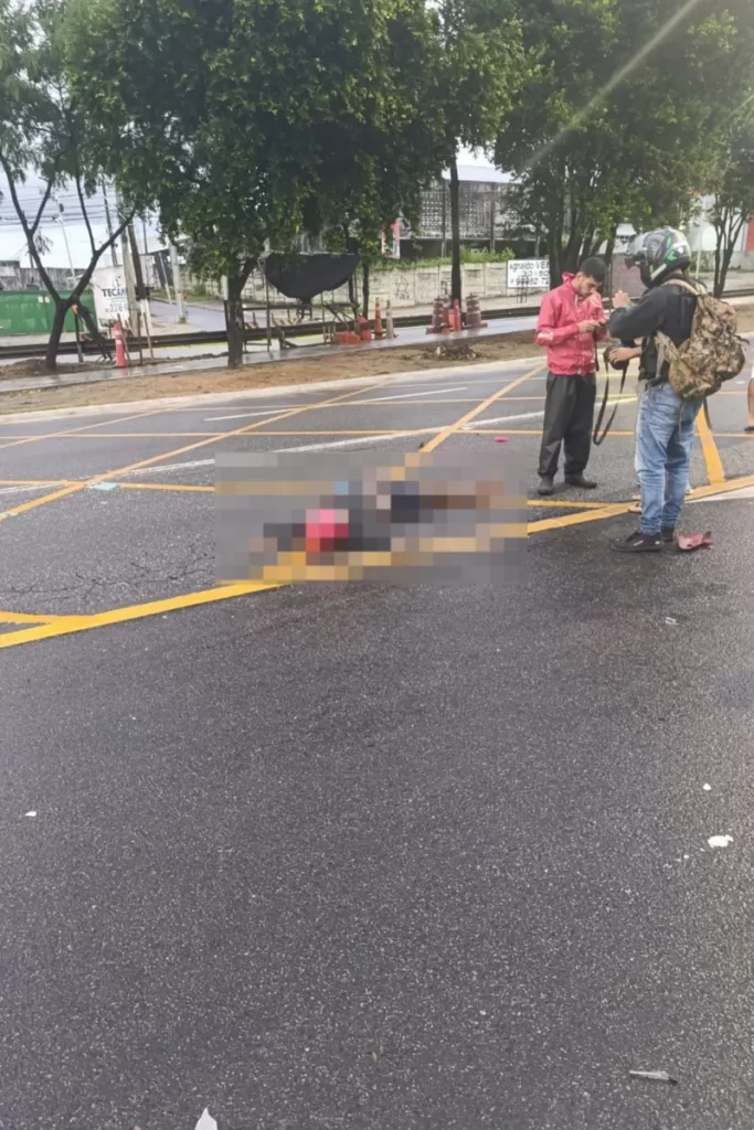 Imagens do local, registrada por populares, mostram que a vítima – ainda não identificada – foi arremessada do veículo.