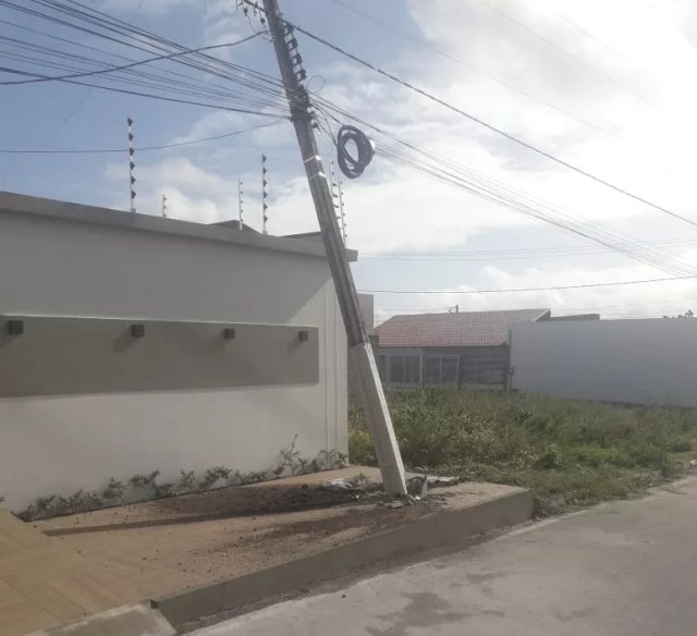 Segundo moradores, após bater no poste, um fio de alta tensão e energizado atingiu uma residência e com isso os moradores estão com medo de abrir o portão e sair do imóvel. O veículo que provocou o acidente fugiu e a estrutura do poste ficou comprometida.