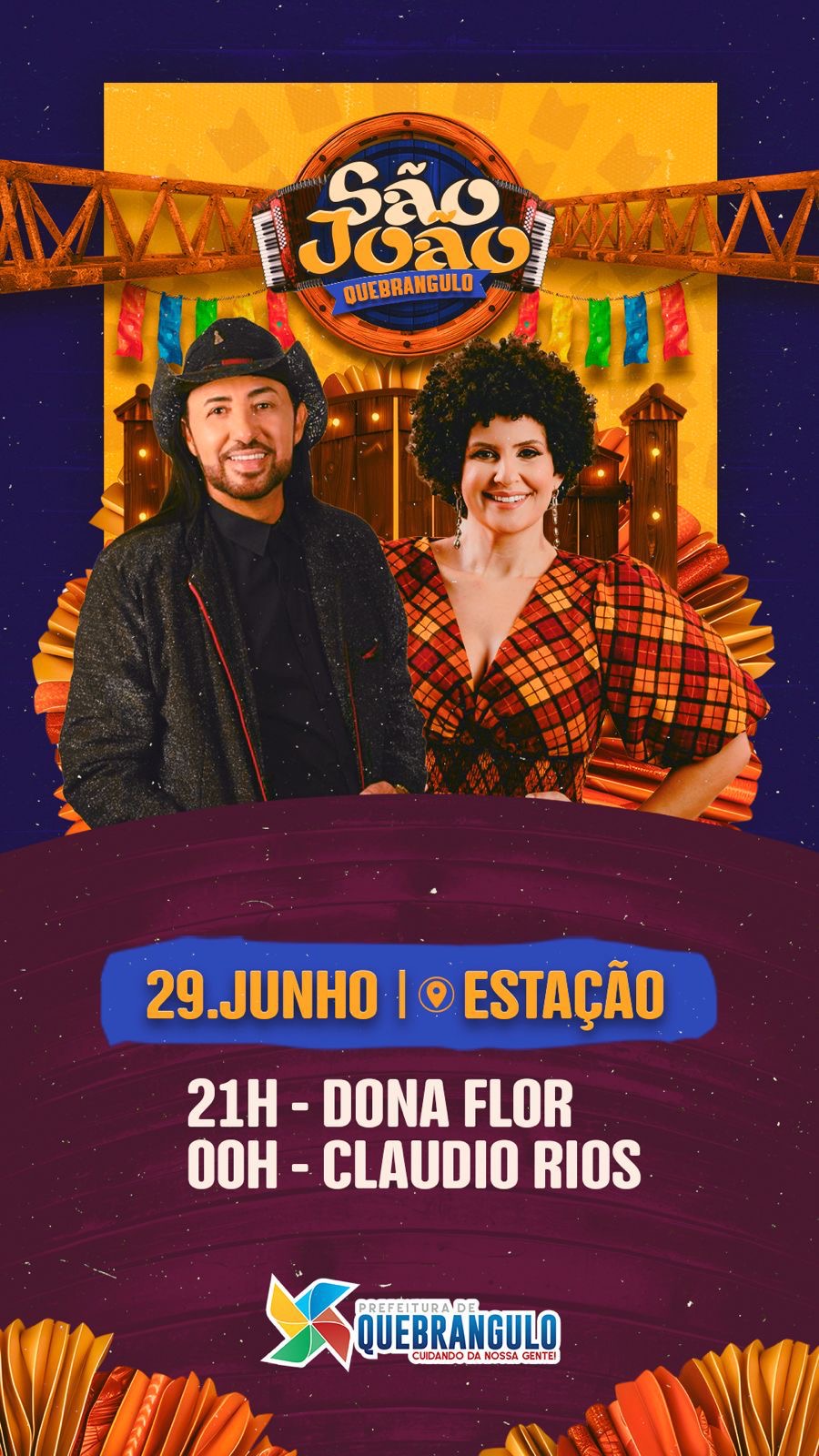 A última noite junina em Quebrangulo de 2024, acontece na noite deste sábado (29). Os festejos chegam ao fim hoje, após grande sucesso e aceitação do público com apresentação de Dona Flor e Cláudio Rios.
