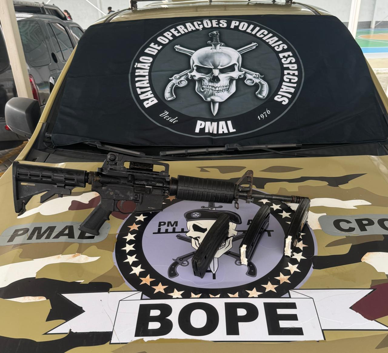 Uma pessoa não identificada foi presa em flagrante e foi apreendido um fuzil 556 de fabricação da Taurus e no mercado o seu valor é estimado em R$ 24.700. As investigações foram conduzidas pela Secretaria de Segurança Pública (SSP) e a apreensão foi efetuada pelo Batalhão de Operações Especiais da Polícia Militar de Alagoas (BOPE).