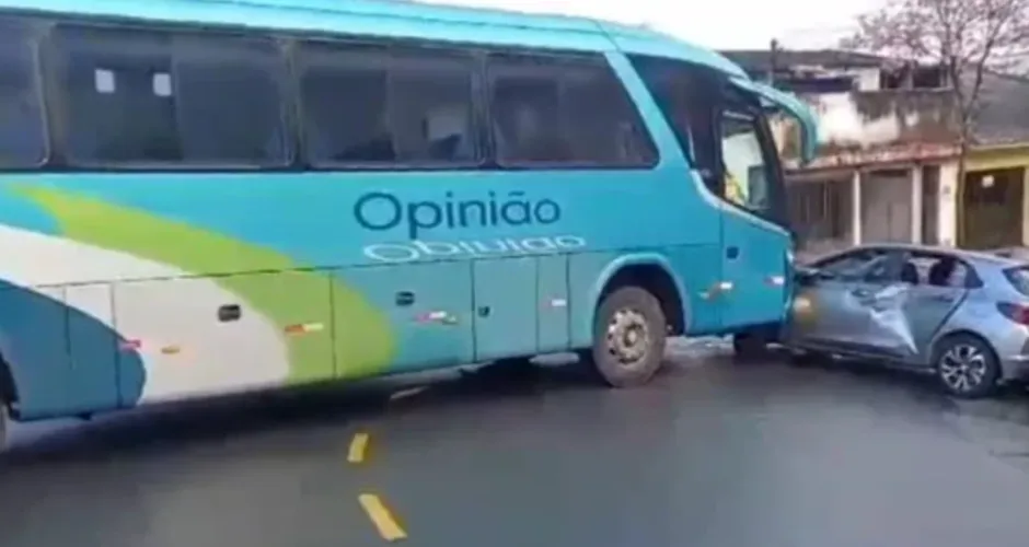 As imagens foram publicadas pelo Diário do Transporte. O carro de passeio está atravessado na rua, com a parte lateral amassada. O motorista do ônibus empurra o veículo menor. Uma mulher tenta pegar o celular no carro, mas é orientada por um homem a sair. “Deixa destruir, deixa”, afirma o rapaz.