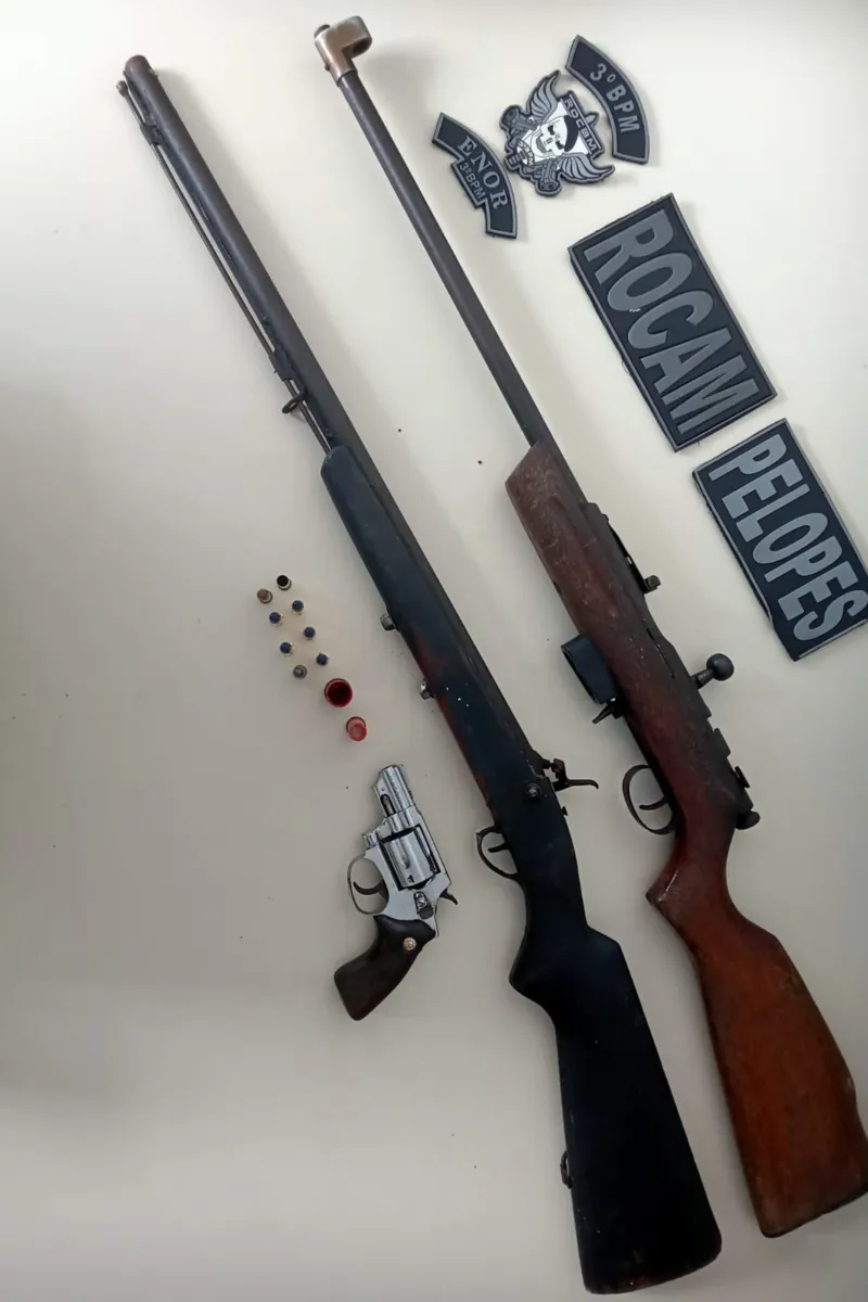 Além do revólver, os militares apreenderam duas armas espingardas calibre 38, sendo uma artesanal, e munições.