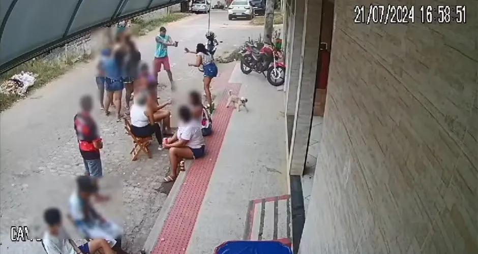 Nas imagens é possível ver que Aline estava sentada na calçada do estabelecimento que fica no Bairro de Fátima. Ela apareceu conversando com outras pessoas às 16h57.