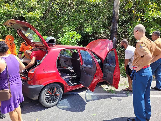 A motorista ficou presa às ferragens do carro, um Celta de cor vermelha, e foi preciso acionar o Corpo de Bombeiros para o resgate. Quatro militares foram encaminhados ao local e fizeram o resgate da mulher.