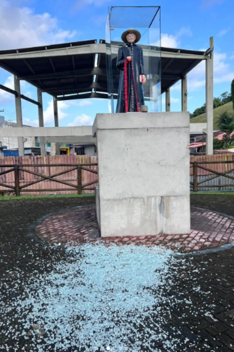 A estrutura foi apedrejada, o que causou danos visíveis ao local de devoção.