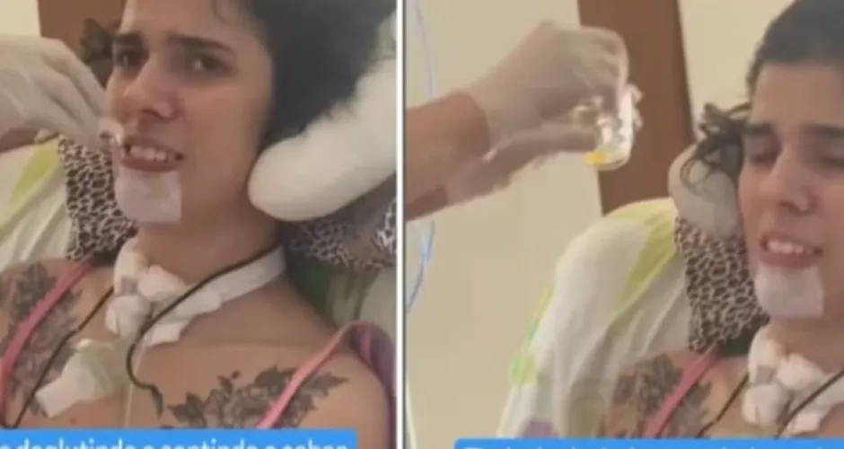 As imagens foram publicadas nessa quinta-feira (1º). No vídeo, ela aparece acompanhada de sua fonoaudióloga que, utiliza um gelo para pingar o caldo de carne na boca dela, que consegue deglutir.