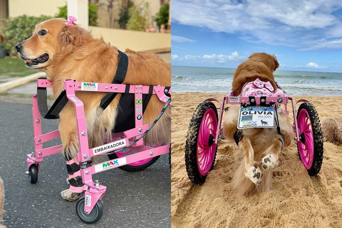 No registro, que foi publicado no Instagram da pet, Olivia aparece deitada ao lado dos donos, latindo e visivelmente muito agitada enquanto vê seu dono, Eduardo, pegar a cadeira de rodas que ela usa para se locomover. “Reação da Olivia quando o papai pegou sua cadeira de rodas na praia”, diz o post.